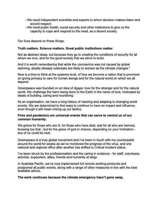 … “In the blink of an eye our world has become unrecognisable. COVID-19 is redefining our reality and there is potential for despair to settle in our communities. I was inspired by this heartfelt letter from David Ritter, CEO GreenPeace Australia Pacific and wanted to share it here (… with permission from David). Love and best wishes to all during these strange days from The Two Monkeys Foundation” … Emma